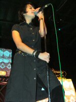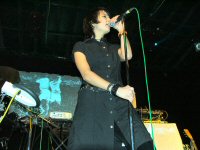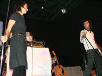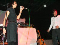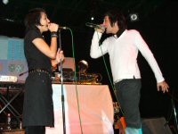 A koncert fél 9 után kezdődött, a Kontroll című lemez nagy slágerével, az It's Over Now című dallal. Az ugrálós, múltat idéző big-beates hangulatú dal talán kicsit túl erős is kezdésnek (tavaly egy ideig ez volt a zárószám), mindenesetre a közönség inkább a második számra, a 2002es Lo-Tech Man Hi-Tech World album nyitószámára, az Explode Your World-re mozdult meg. Hatalmas energiák, boldogan táncoló tömeg - igazi NEO közönségszám! A Kontroll következett, amely meglepően népszerű a fiatalok körében a Massive Attackes hangulatával. A dal finomságai azonban inkább a stúdiófelvételen, illetve a ragyogó Kontroll/It's Over Now kislemezen hallatszanak. Egy vadonatúj szám következett, a World More Real. Fülbemászó dallam, popos alapok; egy nem különösebben bonyolult dal, de kedves, táncolható - úgy tűnik, valami ilyesmi lesz a legújabb NEO lemez. Talán az együttes legjobb dala következik, a Diskhead, természetesen az elmaradhatatlan Yazoora hajazó verzióban. Eddig azt hittem, hogy ezt a dalt csak én szeretem, de most hatalmas tombolás volt körülöttem. Enikő és Péter is itt aktivizálták magukat először igazán. Egy újabb "új szám" következett, a Floating Forever, ami bizonyára rajta lesz az új albumon, noha már tavaly kora nyár óta játsszák koncerten. A dal már most nagy közönség kedvenc, akár még kislemez is lehetne belőle valamikor. Jól megérdemelt pihenőnk következik, a Wanderson, ami a másik nagy kedvencem. Ez a dal a Kontrollon található Barangolás, új effektekkel és remek szövegel megspékelve (megtalálható a Kontroll/It's Over Now maxin). Sejtelmes, Recoilos hangulat, a kedvencem... A Supermodel Planet következik, ami nem a legkedvesebb dalom az együttestől, főleg a túl sokszor ismétlődő refrén miatt. Ez is egyébként egy Kontroll-származék; a Metró című alkotás alapjaira készült. Nagy kedvencem jön, a Nutman, ami a Kontroll Bonus DVDn kapott helyet (a filmben is felhangzik pár másodperce a pszichológusos jelenetnél). A countrys, gitáros hangulatú dal remek hangulatot varázsol. Újra egy vadonatúj szám következik, az Eyetooth, amelyet egy rajzfilmhez írtak Enikőék. A kedves hangzást ezúttal némi sejtelmes hangulattal keverték össze, amelyből egy nagyon ígéretes alkotás kerekedett. Mindenképpen az új album egyik ütőkártyája lehet ez a szám! A nagy közönség kedvenc, a Scorn Me következett, amely először talált utat hozzám, most viszont olyannyira, hogy a koncert csúcspontját jelentette számomra. A jól ismert "lovaglós" alapütem szájharmonikával színesítve már amúgy is figyelemre méltó, ám a ragyogó refrén szinte elviszi a figyelmünket minden másról. Peti kiáll a közönség elé, körbemutogat éneklés közben - nagy pillanatok! A sok új szám után egy régi klasszikus következett, az első album közönségslágere, az It Takes No Weed. Itt a tini-lányok kicsit leálltak és az "öreg" NEO rajongók kerültek előtérbe - hatalmas tombolást csaptunk! A bájosan poppy új számok között azért jó hallani egy ilyen régi, pörgős "zúzdát"... A főprogram újra egy vadonatúj számmal zárult, az Over Space And Time Again első hallásra a World More Real-re emlékeztetett. Rövid szünet után jött a ráadás, az új kislemezzel, a Record Straight-tel. A közönség kedvenc szám mindenképpen jó választás új kislemeznek, igaz a koncertre járók már több, mint 1 éve ismerik. A koncert az 1999es nagy slágerrel, az Aiiaiiyo-val zárult - a NEO rajongók mindenfajta fanyalgása ellenére a legnagyobb ugrálás és az egyik legjobb hangulat érdekes módon mindig erre a dalra alakul ki. Sajnos idő szűkében lemaradt az együttes egyik legnagyobb slágere, az Everybody Come On, amely az elmúlt években talán az elsőszámú kedvenccé nőtte ki magát. Így is azzal az érzéssel indultunk haza, hogy a NEO még mindig egy biztos átlagot hozó koncertbanda, aki vonzza a fiatalokat - most már csak egy új lemez kellene, ahol maradéktalanul tudjuk élvezni az új dalokat.