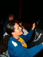 Az együttes mögöttünk sörözött a koncert előtt, többek között a Nulladik Változatból ismert Fenes Tiborral. Fél 9kor aztán szépen felsétáltak a színpadra, hogy az ősrégi Korrozióval azonnal megadják az alaphangulatot az ekkorra már szépen összegyűlt tömegnek. Az új album nyitódala (Ma éjjel) után két koncert-kedvenc következett a zseniális 1999-es lemezről, a Száz év magányról (Többet vársz a jótól, Sonette). A közönségre nem lehetett panasz: az első perctől kezdve ment a mozgás és a szövegek teli torokból való üvöltése, különösen az első sorokban. A zenekar profin vezényelte a bulit, kevés átvezető szöveggel, sok zenével, megbolondított verziókkal. Két új szám után (Csak azt, ami jó, A belső oldalakon) újra oldies-blokk következett: az első, Könnyek és virágok című lemez két nagy koncert-kedvence, az Eltűntél és az Esőtánc következett egymás után. Az Eltűntél ráadásul kifejezetten hosszú verzióban szólalt meg, sokunk nagy örömére. Az együttes talán legnagyobb slágerével, a Hello-val folytatódott a buli, érezhetően többen énekeltek-táncoltak erre a dalra, mint a többire. A nehezen szokható új albumról következett ezután 5 szám (Nyugatra el, Tudom, itt voltál, Soha ne gondold, Mozi (Maya II), Város), és el kell mondani, hogy élőben sokkal meggyőzőbbek a dalok, mint a sokszor dobozhangzású lemezen. Ricsi és a billentyűs Losó néha figyelték, hogy a közönség mennyire felkészült az új dalok tekervényes szövegéből. Ricsi sokszor kimosolygott a színpad jobb oldalán álló feleségéhez és a kislányához, aki bűbájosan jó néhány dalt végigénekelt a repertoárból. Az igazi meglepetést az együttes a koncert végére tartogatta: lazán, egymás után lenyomták a több, mint egy évtizede pihentetett Jó volt, valamint Édes élet című dalokat. Sajnálatos módon pont ekkor nyomta fel valaki a potmétert, mert a két számból csak zajos masszát érzékelhettünk, Ricsi pedig elveszetten tátogta a dalszövegeket. Nagy kár, mert ki tudja, hogy mikor fogja legközelebb játszani az együttes ezt a két számot... Feltűnő viszont, hogy az összes előadott "régi" szám az első lemezről származik; a zseniális 1992-es Isis és a nem kevésbé briliáns 1994-es Ragyogás album így kissé feledésbe merült mostanában. A főprogram végeztével mindössze talán fél percig kérették magukat a fiúk és visszajöttek a ráadásra. Mivel már csak egy számra volt idő 10 óra előtt, így szinte biztosra vehető volt, hogy a Száz év magány nagy koncertslágere, a Hideg, mint a jég lesz a záródal. Így is lett, Ricsi pedig a dal végére kiült elénk a kontroll-ládára és mosolyogva ismételgette a refrén záró sorát : "A látszat csal... néha a látszat csal..." A jó hangulatú búcsúzás után, úgy néztünk körbe, mintha egy másik bolygóról csöppentünk volna vissza a Földre. (van erre rímelő szövegrészlet a szépséges Perfect Name dalszövegek között: "Földről az égbe szállj és újra a Földre, hogy hazatalálj"). Ritkán lehet látni ennyi feltöltődött lelket, csillogó tekintetet látni egy magyar együttes koncertje után. Itt most lehetett. Ez volt a Perfect Name eddigi legjobb koncertje. |