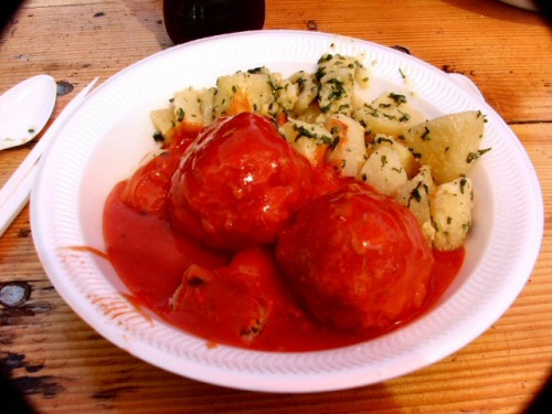 08.10. - Paradicsomos húsgombóc főtttburgonyával.