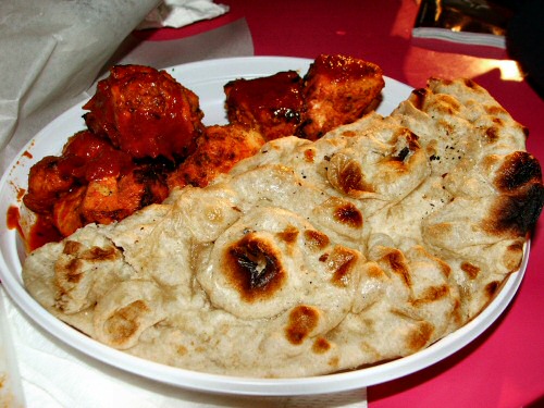 Az ekzotikus ételek közül kiemelném a Kitelepült Maharadja étterem sátrát ahol autentikus indiai ételehez juthatott bárki.Jelen esteben egy kemencében nyárson sült, erősen fűszerezett csirkesaslikról és indiai kenyérről van szó. A mártással óvatosan mert elvörösödik töle az európai ember feje!