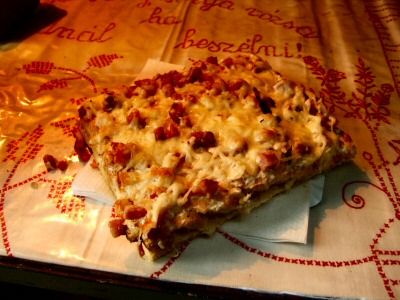 Minősítés: Egyszerüen nehéz rá szavakat találni pedig az elkészítése nem egy ördöngosség. Kenyértészta tetején tejföl szalonna sajt és hagyma. valami fantasztikus ízhatás és eléggé laktató. A Pesti Est színpad mellett bukkantunk erre a remek ételre. A pékmester szerint a magyarok pizzája :) |