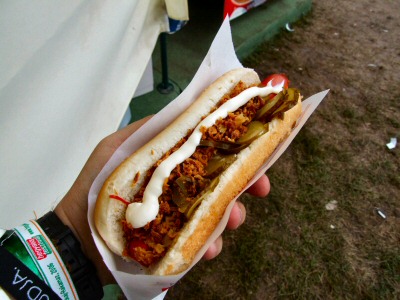Minősítés: A mai étel a nemzetek konyhájának legnyugatibb pontjáról jött. Ami végképp lenyugözött a készitok gyakorlott mozdulatai, ahogyan mérnöki pontossággal és nagy sebességgel készítik el az ételt. A Hot dog maga minoségi anyagokból készült. A virslit közvetlen a gozbol tették a kiflibe. És a készítok még itt is gumikesztyuben voltak.